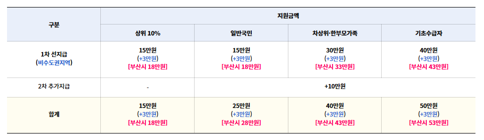 - 2차 지급: 1차와 동일하게 지원되지만, 소득 조건 및 지급 기준 일부 다름