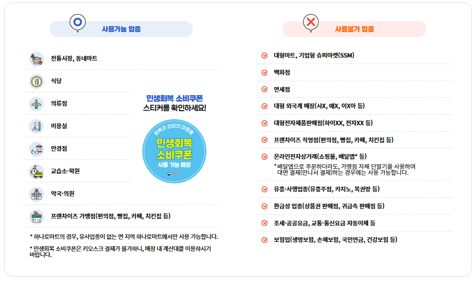 - 사용처 제한: 동네 상권 중심, 일부 업종은 제외