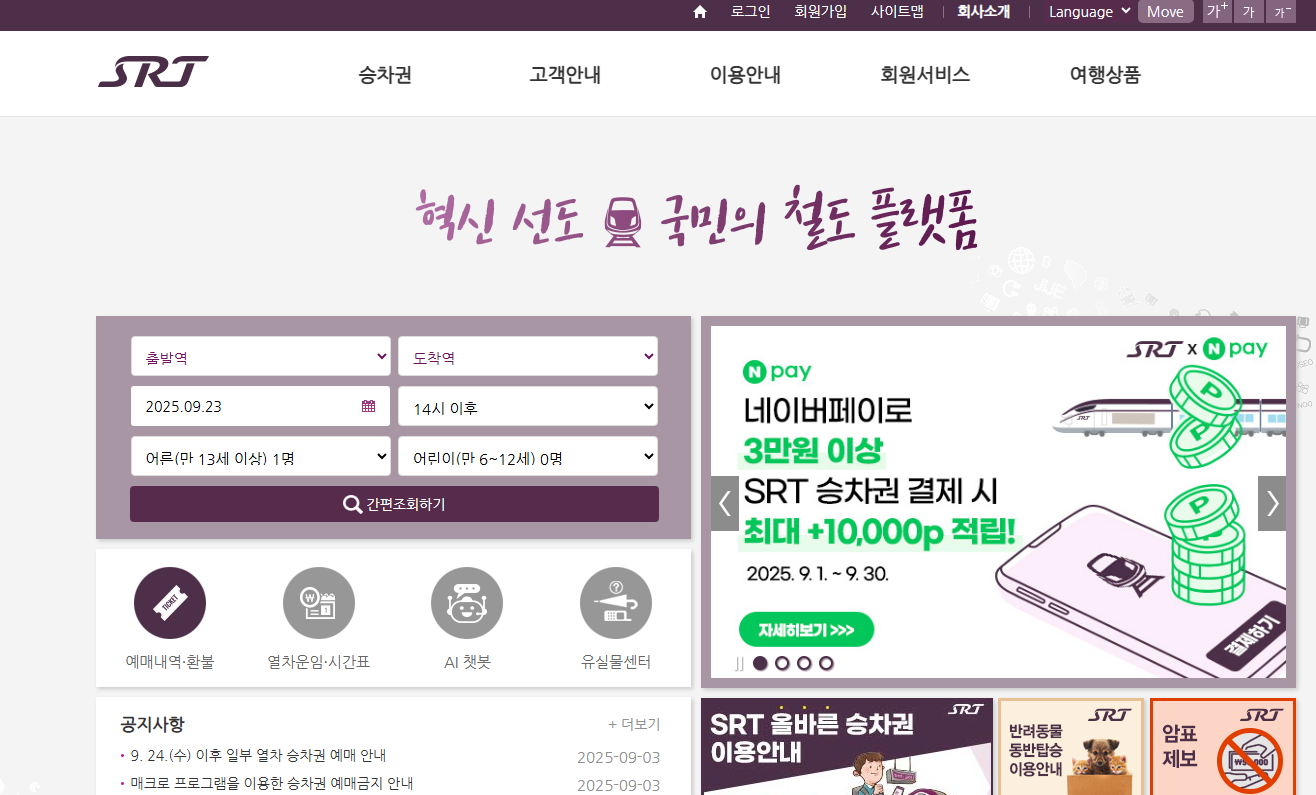 - SRT 교통약자 결제 기한: 9월 17일(수) 자정까지