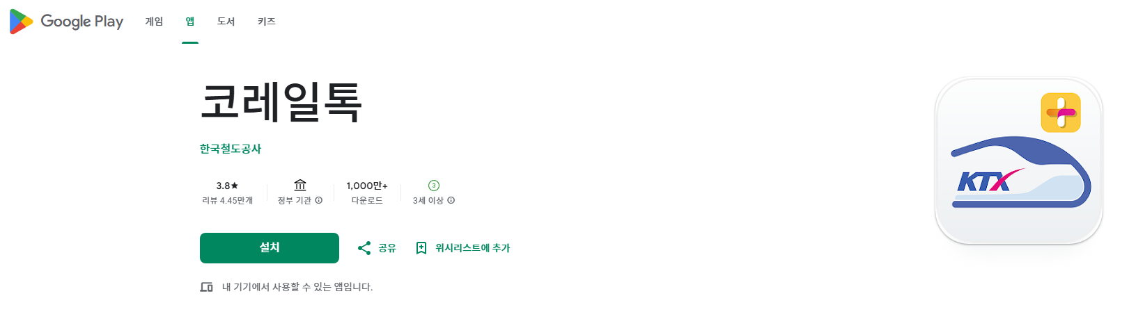 - 코레일: 홈페이지, 코레일톡 앱, 전국 역 창구