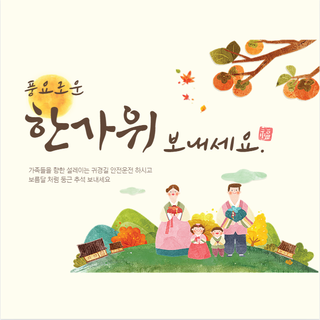 카카오톡, 문자메시지, 이메일 등 어디서든 사용할 수 있는 추석 인사말 이미지는 전달력이 강해, 바쁜 시대에도 따뜻한 명절 분위기를 전할 수 있습니다.