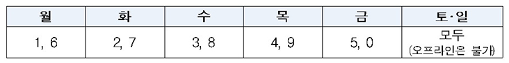 - 첫 주(9.22.~9.26.)에는 출생연도 끝자리를 기준으로 한 요일제가 적용되어 신청 가능 일자가 제한됨.