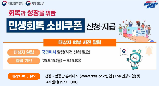 “2차 소비쿠폰 민생회복지원금”은 소비 진작과 민생 안정이라는 목적 아래, 정부와 지자체가 시행하는 중요한 복지 정책입니다. 신청방법, 기준, 대상, 지급일 등을 정확히 파악하여 자격이 되시는 분들은 꼭 신청하시길 추천드립니다. 특히 “2차 소비쿠폰 민생회복지원금 대상 확인”을 미리 해보면 신청 후 거절되는 불편을 줄일 수 있습니다.