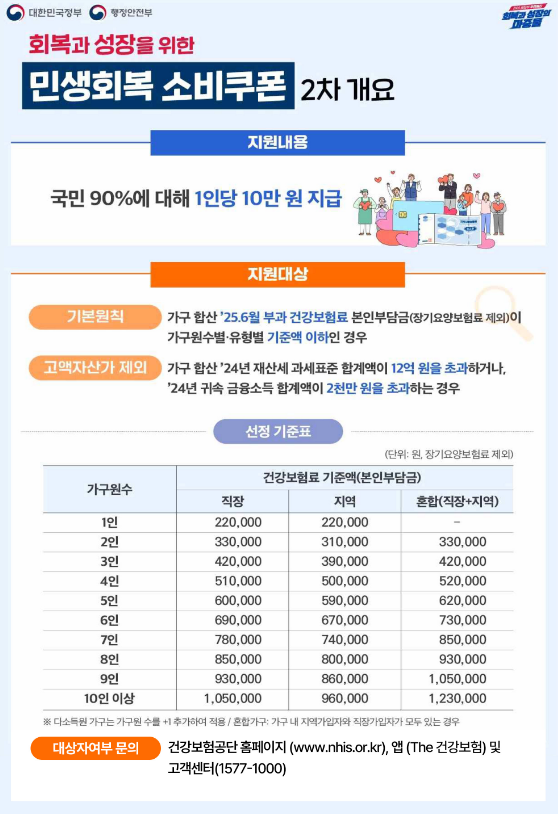 “2차 소비쿠폰 민생회복지원금 대상”은 소득, 가구 유형 등 기준을 충족해야 하며, 해당 조건이 안 되면 신청해도 수혜자가 아닐 수 있습니다.