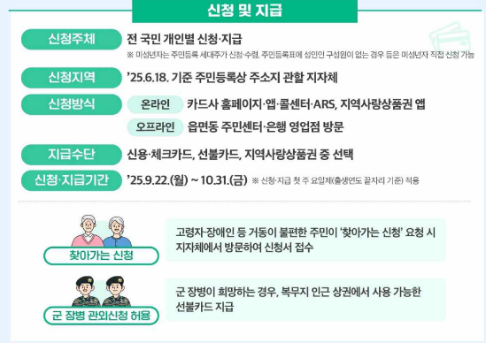 - 지급 방식: 신용·체크카드, 선불카드, 지역사랑상품권 중 선택