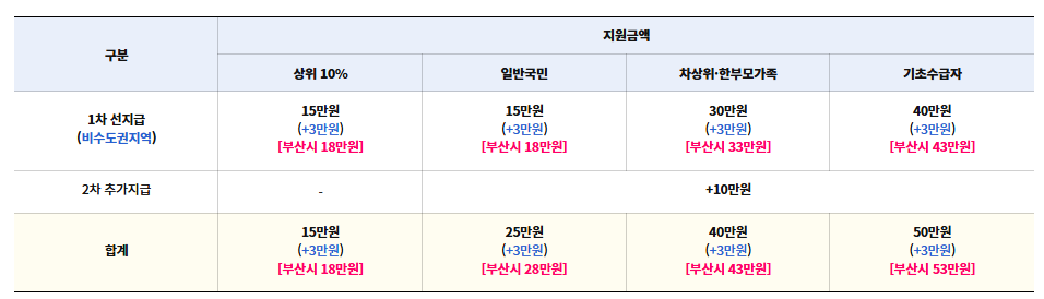 - 비수도권(부산 등): 1인당 3만 원 추가 지급