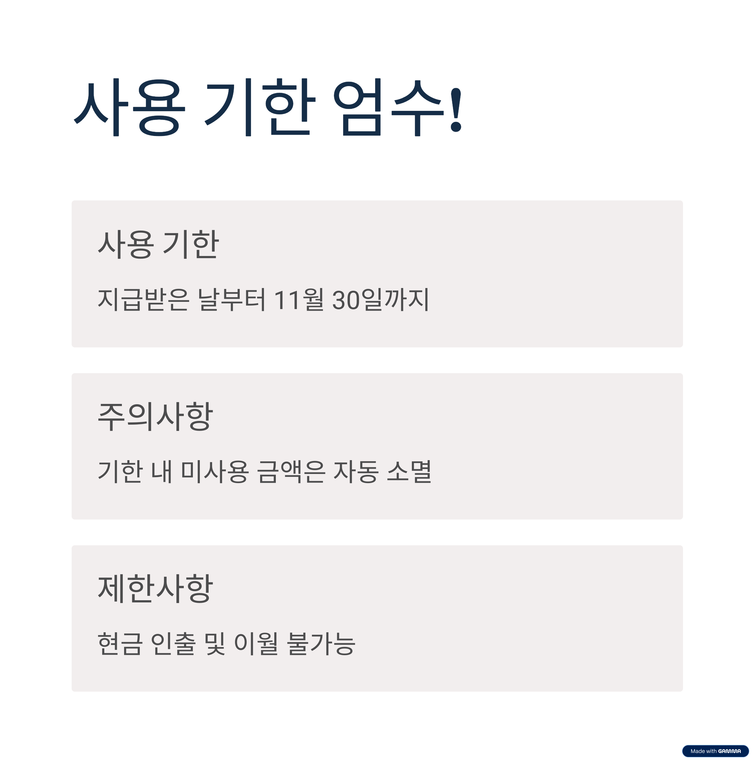 - 사용 기한은 2025년 11월 30일까지이며, 이후 자동 소멸