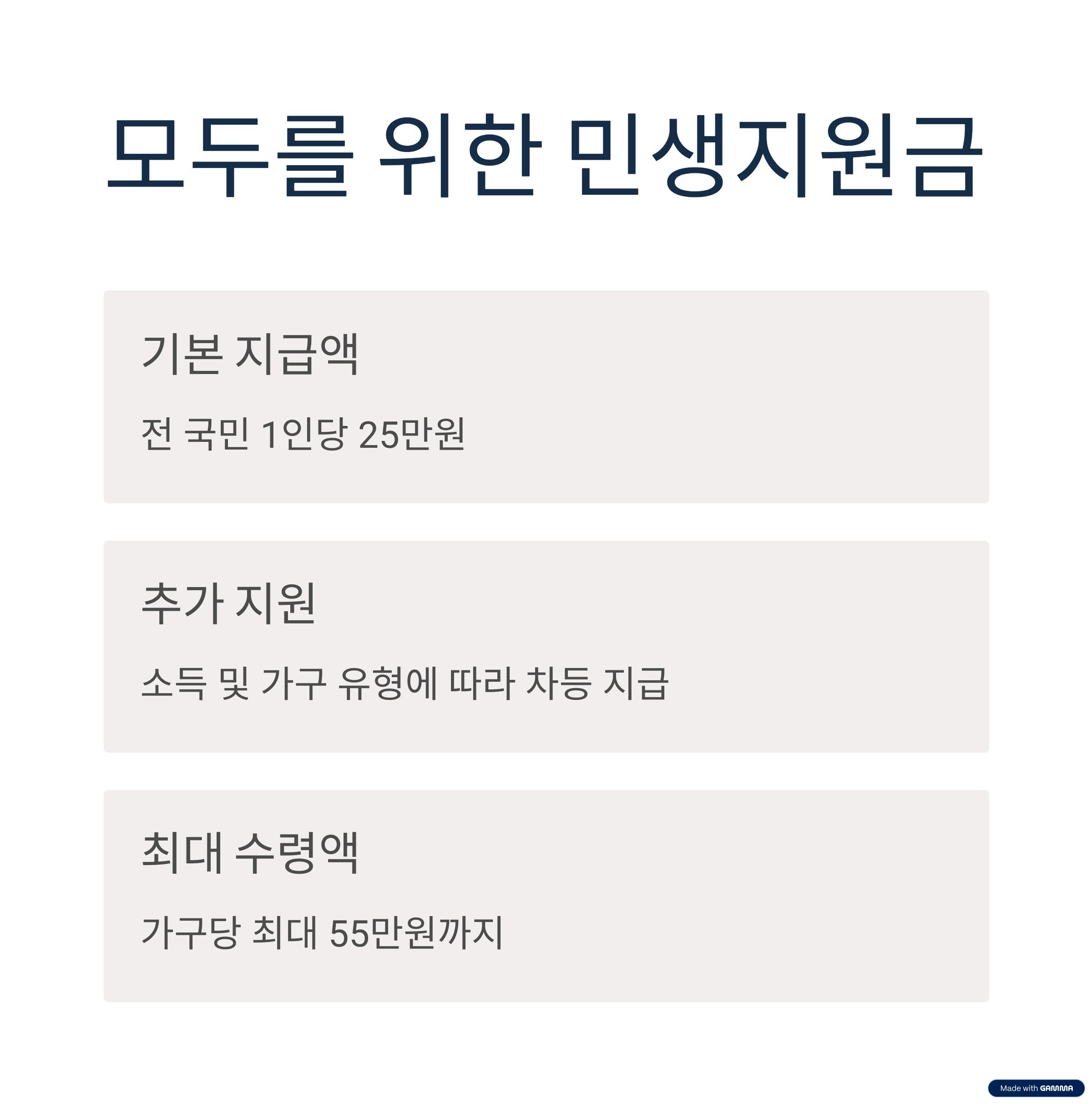 예: 일반 국민 기준 최대 25만, 기초수급자는 최대 50만 지급.